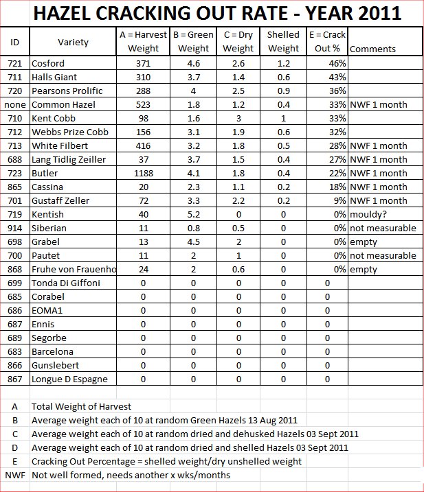 This year Cosford and Halls Giant came out with highest cracking percentage. But Butler would come out the best as it has a bigger crop. This data is by no means scientific, as there are lost of variables, ie some would be better if left another month or so before harvest.