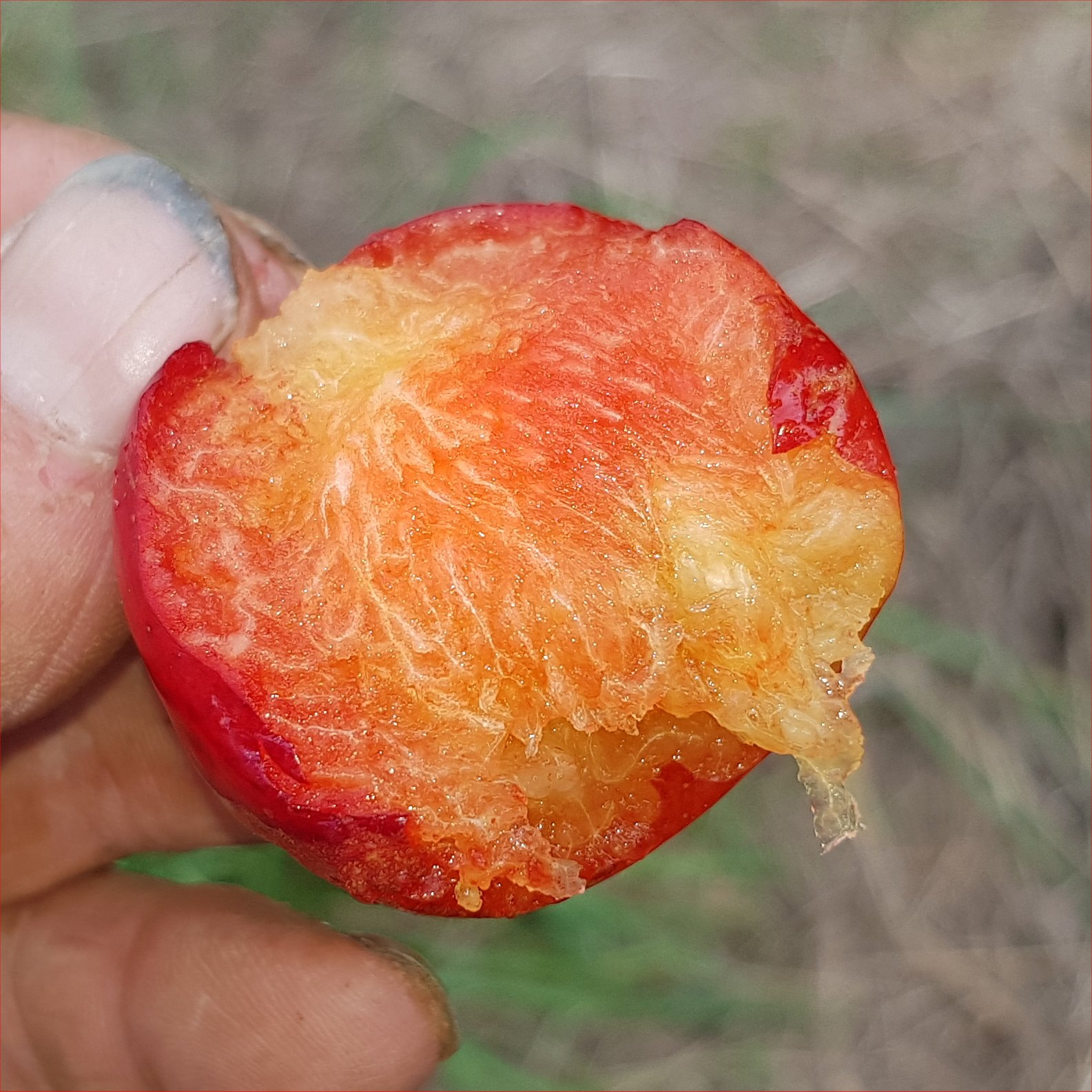 A relatively small to medium plum, of exquisite taste. The variety is very hardy and has good resistance to fungal diseases. If you just see the photo, you would say that’s a ‘cherry’, but the size is about twice that of an average cherry.