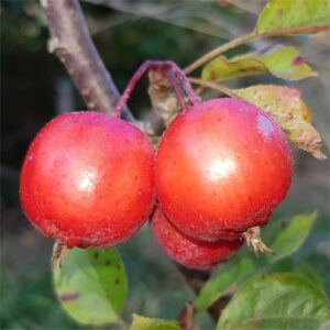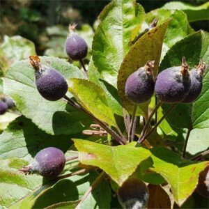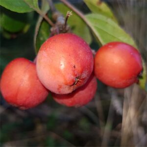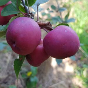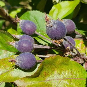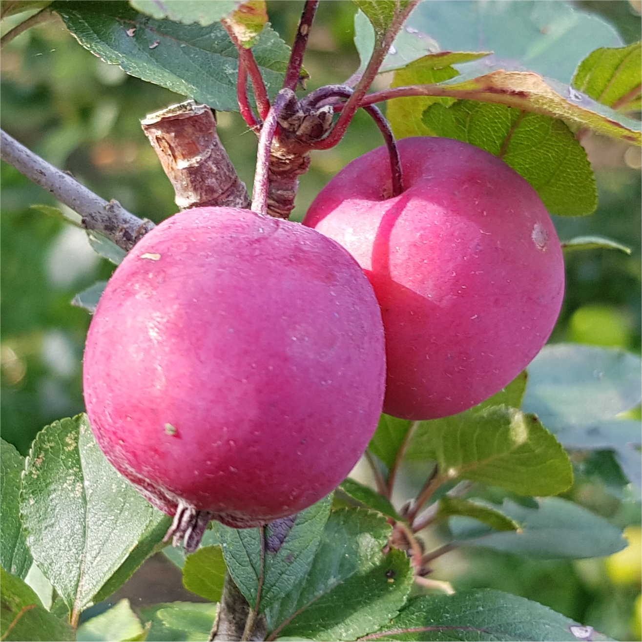 In passing through my orchard, this particular variety caught my eye. It has vivid purple fruitlets, that show up against the green of the leaves. Very often grown as a pollinator, as it has a very wide flowering period.