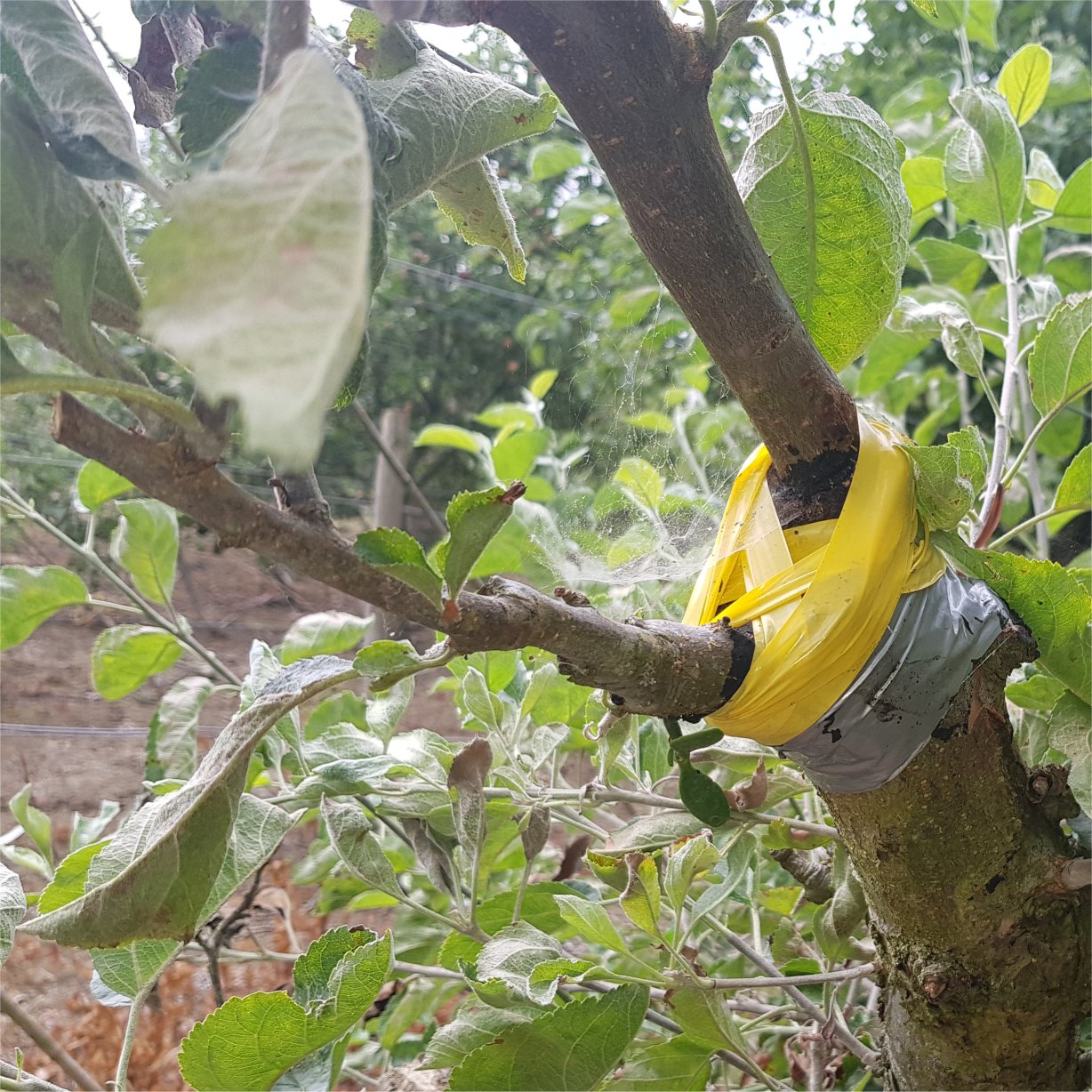 The gray gaffer tape did not give enough support, so a few extra turns of yellow electricians tape was applied. How many Mistletoe’s can you see in this photo (One)