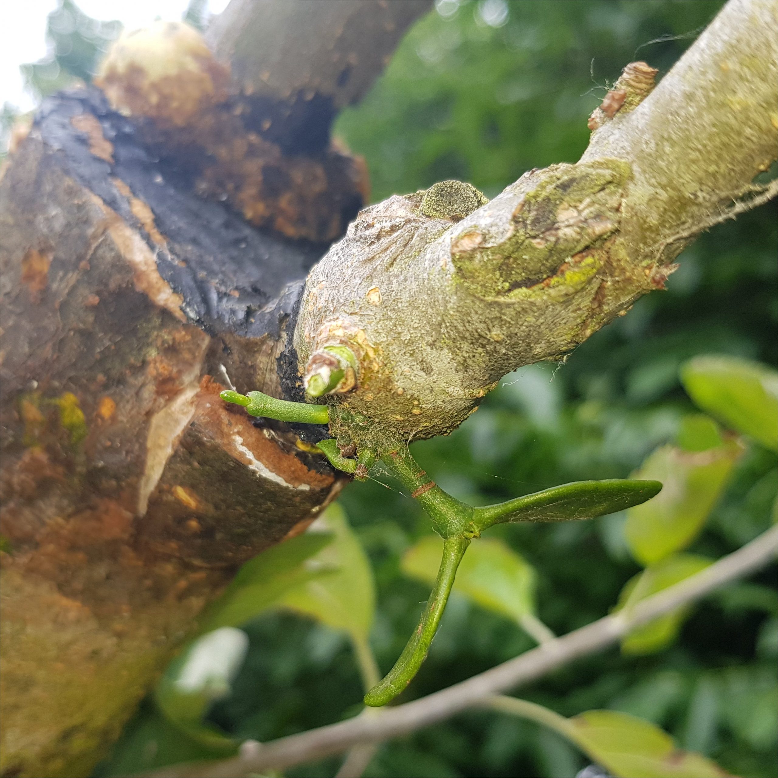 Grafting Mistletoe onto and old Apple tree – August 2022