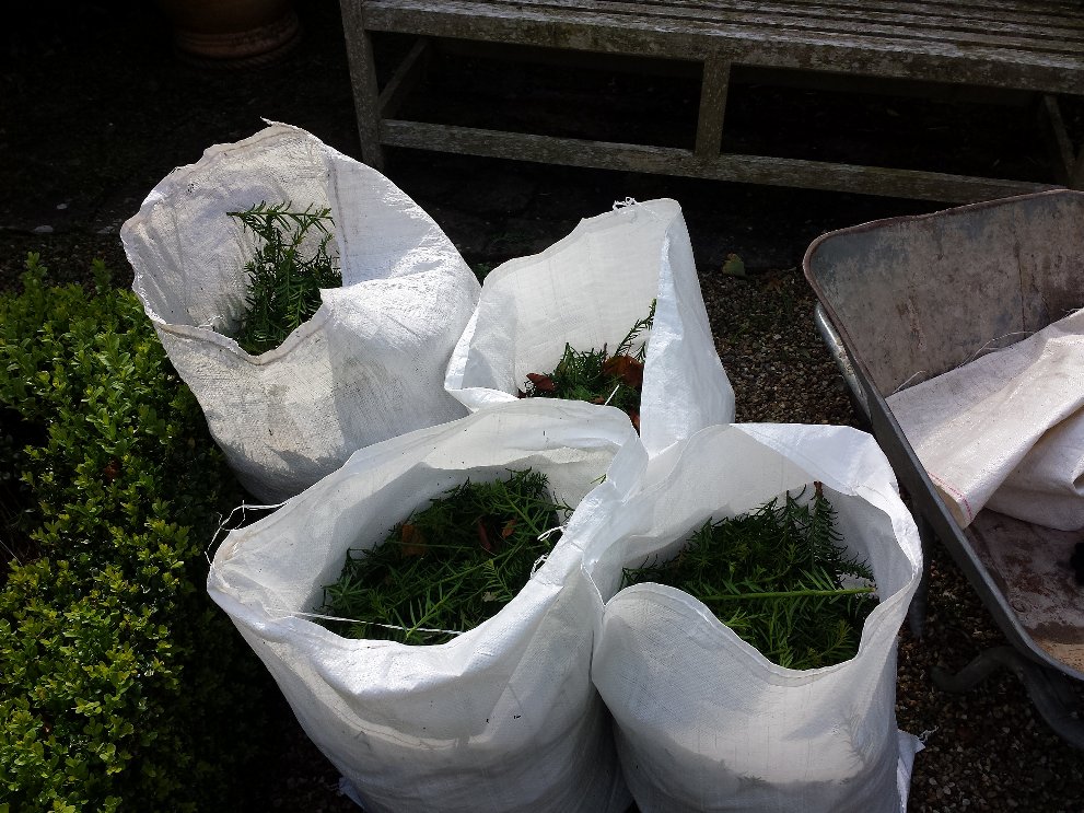 It takes me approx 6 days of continuous hedge cuttings, to go all around the yew hedges. Last year something like 250kgs of cuttings were sent off. It looks like this year its going to a lot more.