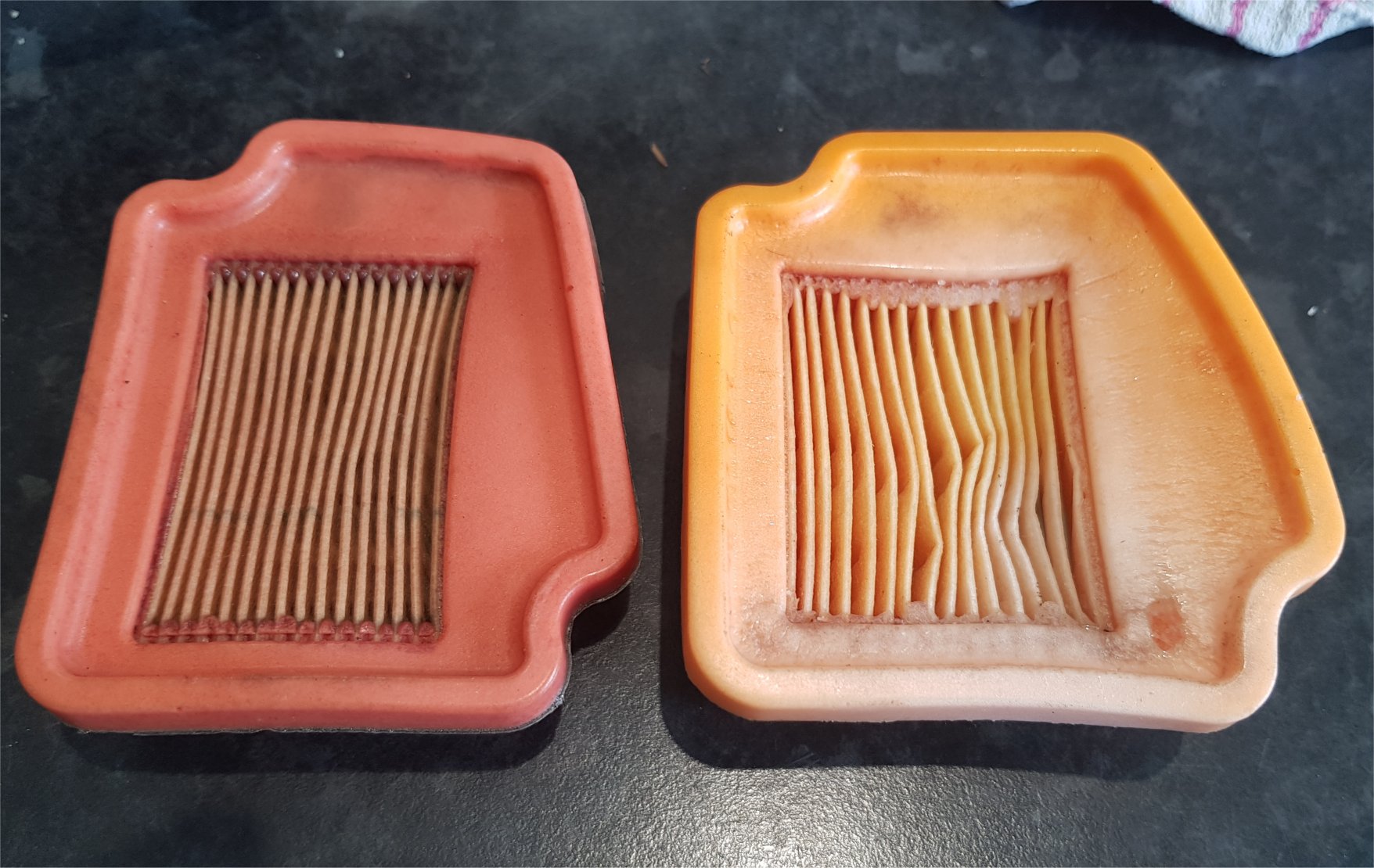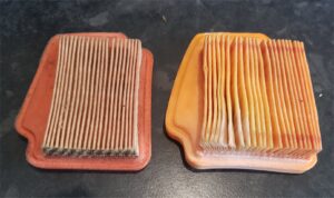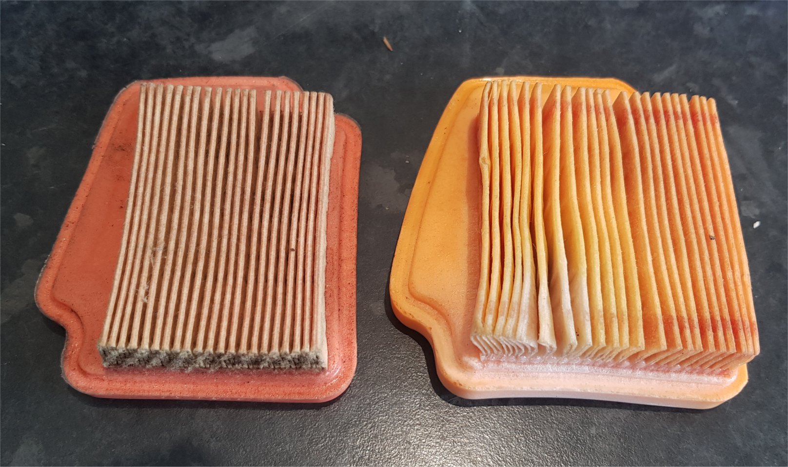 The original Stihl air filter on the left, and cheap alternative on the right.
