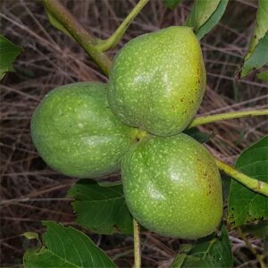 Coble 2- This introduction from Pennsylvania is a very large oval nut, the size of a goose egg. Nuts of this size are usually considered a novelty, because the large size shell is often poorly filled. This selection fills better than most and has a fine sweet flavor even when taken fresh off the tree. It is thin shelled and cracks easily. It is very productive but does have problems with walnut blight and nut fill in some years. It is a protandrous cultivar so it should be paired with ‘Broadview’ or ‘Sejnovo’ for best production. Suited for climate zones 6b-8.